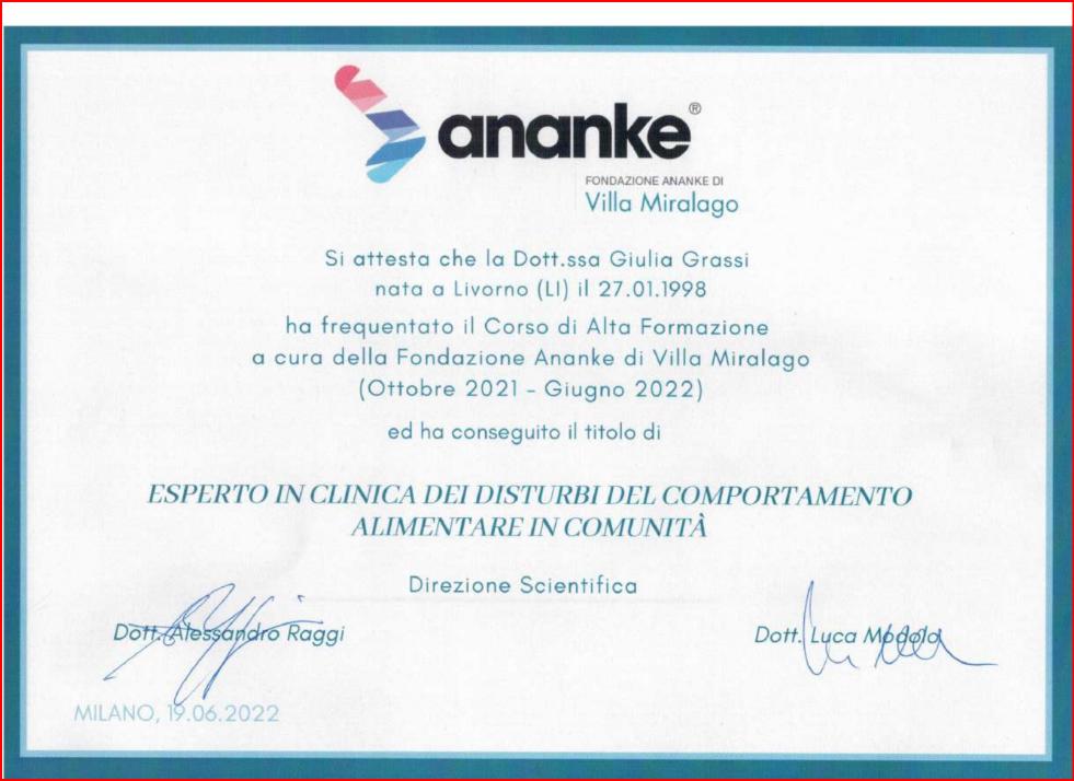 Consiglio la Dr.ssa Grassi Giulia a chiunque in questo momento stia vivendo delle difficoltà con l’alimentazione , è davvero preparatissima sui disturbi alimentari, specie in età adolescenziale come nel nostro caso.