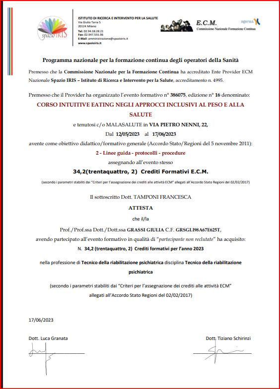 La dottoressa Grassi mi ha aiutato a risolvere il mio problema di selettività alimentare.