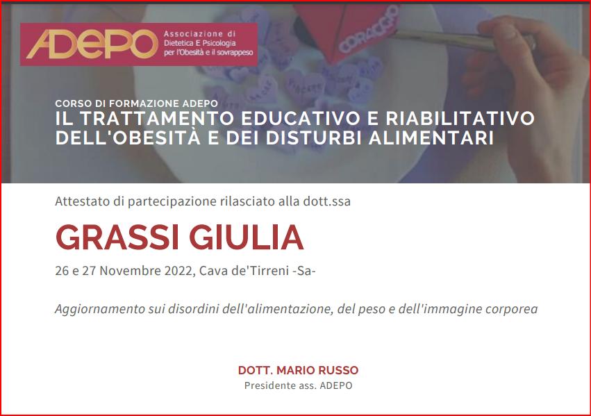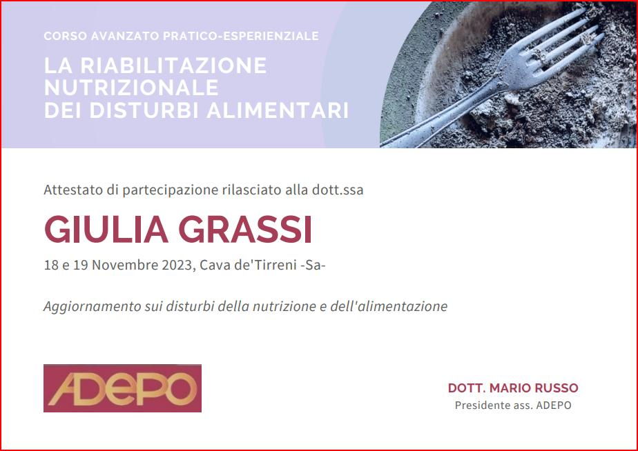 Consiglio vivamente la dottoressa Giulia Grassi. Una professionista eccezionale. Empatia, umanità, bravura, comprensione ... sono tutte caratteristiche che la contraddistinguono. La dieta che mi ha dato è tanto varia e adatta al mio stile di vita. Ad ogni controllo mi stimola ad andare avanti e a non arrendermi.