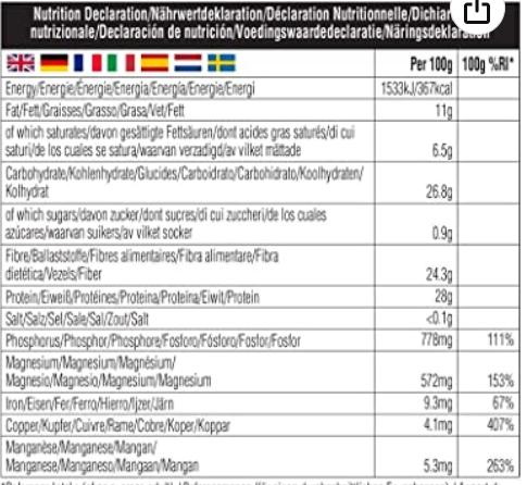 Guardando i valori nutrizionali dei due prodotti spicca il contenuto di grassi notevolmente alto per la granella che imporrebbe un consumo in grammi più moderato rispetto alla polvere.