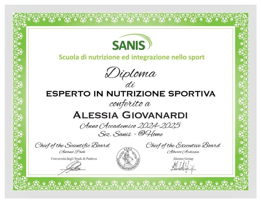 2025 – Specializzazione in Nutrizione Sportiva