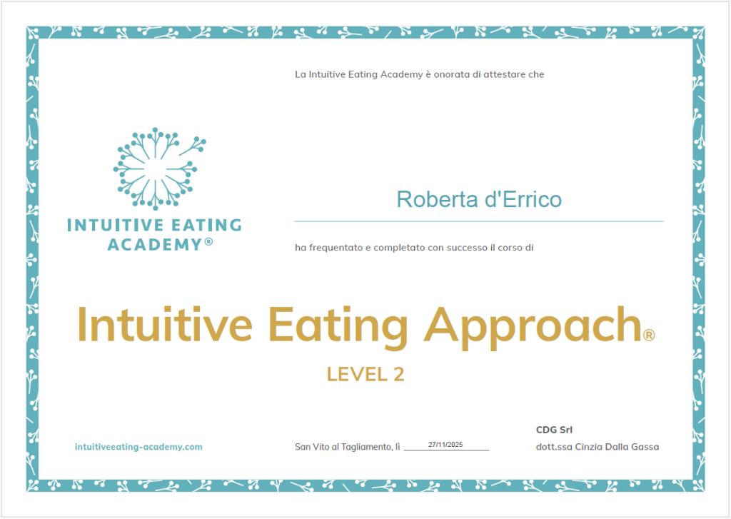 Nel mio lavoro utilizzo l’Intuitive Eating Approach, un modello innovativo di educazione alimentare basato sulle più recenti evidenze scientifiche sul cambiamento delle abitudini e progettato per andare oltre i tradizionali schemi orientati alla sola prescrizione diete.
