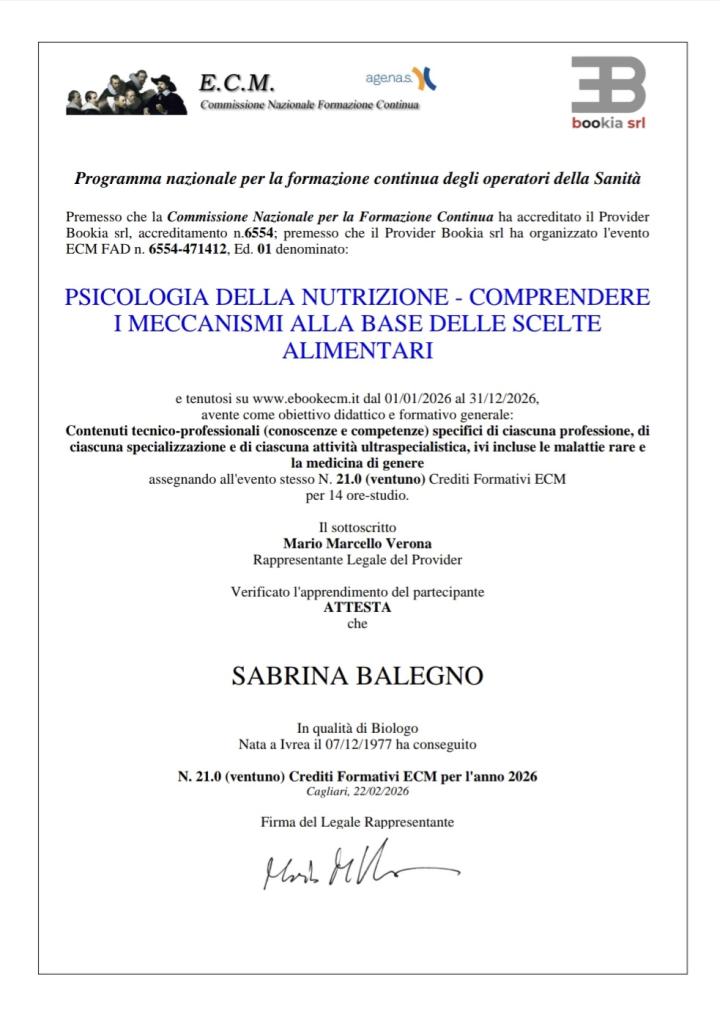 La dottoressa Sabrina Balegno, è stata ed è per me un punto di riferimento. Mi ha accompagnata in un percorso impegnativo e ha contribuìto a farmi raggiungere un adeguato equilibrio salutistico.